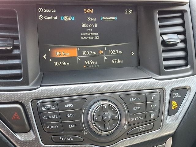 - Radio: AM/FM/CD Audio System w/NissanConnect -inc: 6 speakers, 8" color display w/multi-touch control, HD Radio, SiriusXM satellite radio, USB connection ports (2 type A) for iPod interface and other compatible devices, SiriusXM Travel Link (weather, fuel prices, movie listings, stock info and sports), Bluetooth® hands-free phone system and streaming audio via Bluetooth®